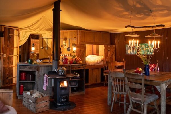 Bij De Oude Melkstal Deze link opent in een nieuwe tab van BoerenBed logeer je in een safaritent op een actieve melkveeboerderij. De kinderen helpen de boer met het voeren van de kalfjes, het proeven van verse melk en heerlijk spelen in de natuur. Ondertussen geniet jij van de rust en de ruimte. Het boerenleven maakt dat je hier echt even samen teruggaat naar de basis!