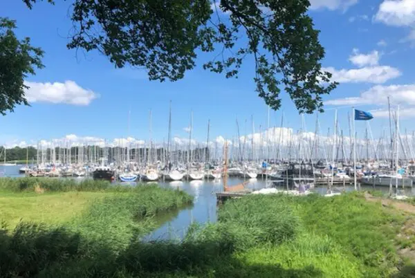 We besluiten een stuk te gaan wandelen. Langs het water natuurlijk, want daar is veel te zien! De zon schijnt en in de verte zien mijn kinderen een speeltuin; die ziet er leuk uit! Voor €2,50 per kind zijn ze ruim anderhalf uur heerlijk aan het spelen op de mega glijbaan waar je met een mat vanaf gaat, de schommels, klimrekken, wippen en meer. Wij zitten lekker op het terras met een kop koffie te genieten van uitzicht op de enorme hoeveelheid masten van zeilschepen die aan de andere kant van het dijkje liggen.