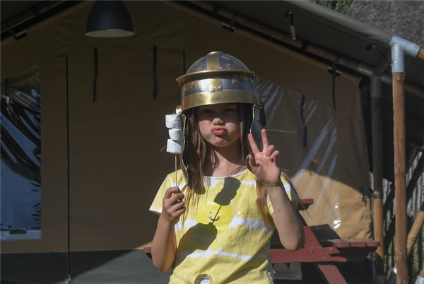 Aan het einde van de dag kun je nog lekker zwemmen in het Romeins zwembad en ‘s avonds worden er verhalen van vroeger verteld rondom een zelfgemaakt kampvuur.