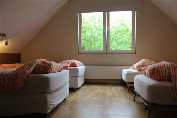Wanneer je met meer dan 12 personen bent, dan heb je ook nog een 4e familiekamer: een inpandig appartement op de begane grond, met eigen keuken en badkamer. Met de schuifdeur open heb je een familiekamer voor 4-5 personen. Met de schuifdeur dicht verdeel je het appartement in 2 slaapgedeeltes (2+2-3 personen).