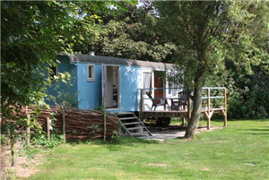 Tussen de oude fruitbomen staat een vakantiehuisje op wielen, met bedstee en een drie hoog stapelbed! Je kijkt zo uit op een speelveldje met zandbak en glijbaan in het midden, ideaal om de kids tijdens het spelen toch in de gaten te kunnen houden.